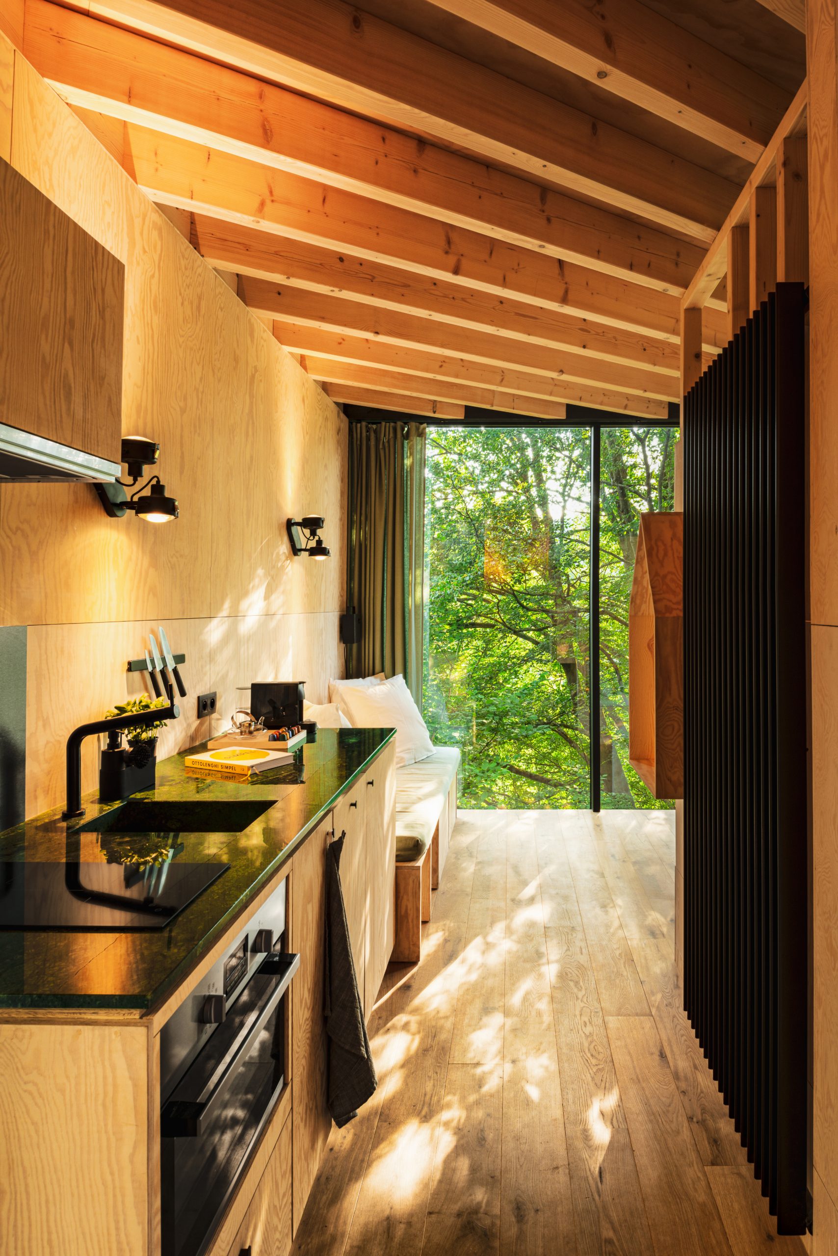 Step beneath the refined wooden canopy, a seamless fusion of masterful craftsmanship and nature’s elegance. Offering both shade and shelter, the play of sunlight filtering through the beams creates a truly special experience, enhancing the sense of connection with nature. Inspired by the open hillside, the design ensures privacy while embracing the natural beauty of the environment, offering a secluded and tranquil escape.