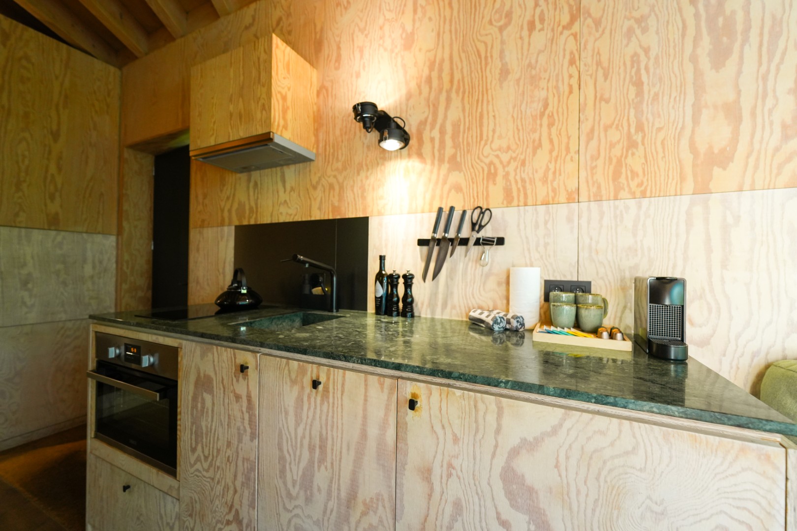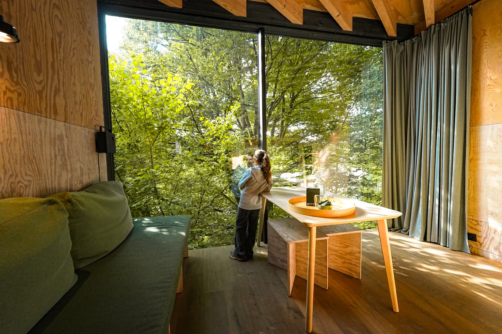 Wake up surrounded by the calming beauty of the forest. Large windows fill the room with natural light and offer peaceful views of tall trees and lush greenery just outside. From the comfort of your bed or lounge area, you can watch the sunlight dance through the leaves and feel completely immersed in nature. This cosy forest view makes the Owl cabin a perfect retreat for anyone seeking tranquillity and a unique stay in La Roche-en-Ardenne.