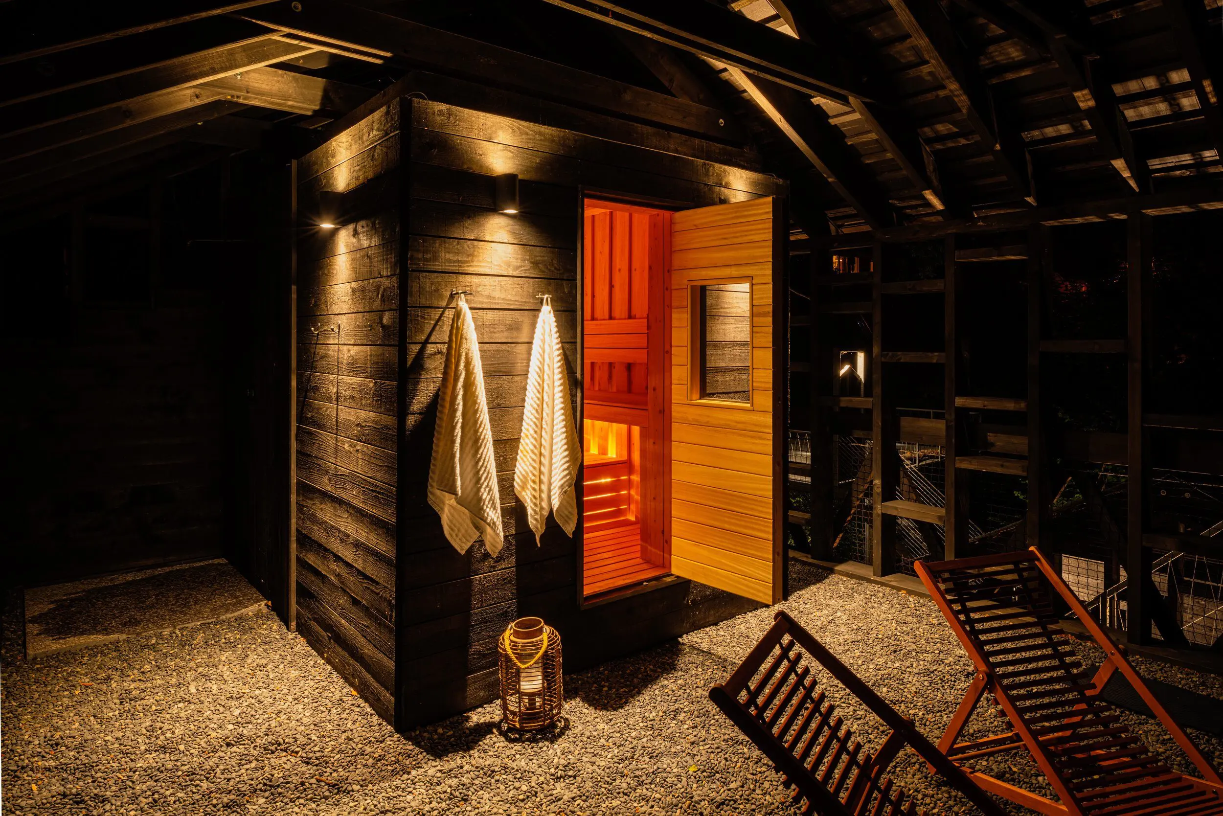 Relax in your private sauna, thoughtfully designed with a beautiful wooden canopy that blends comfort and nature. As sunlight filters through the beams, you’ll feel a gentle connection to the peaceful forest around you. This secluded spot offers both privacy and tranquility, making it the perfect place to unwind after a day exploring La Roche-en-Ardenne. Whether you’re seeking wellness, relaxation, or a unique stay in the Ardennes, the sauna at the Owl cabin is your personal retreat in nature.