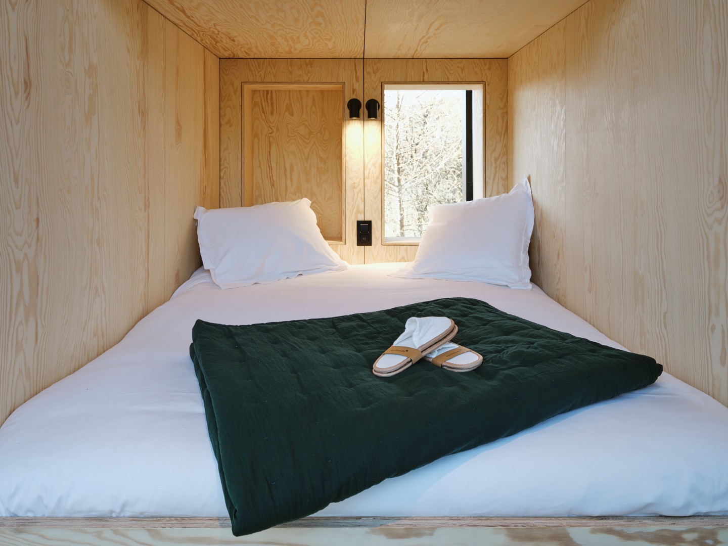 Drift into a deep, restorative sleep in the Racoon cabin’s luxurious master bed or its warm, inviting bunk beds. Nestled in the heart of Bertogne in the Belgian Ardennes, this cozy cabin lets you fall asleep with peaceful forest views all around you. Wake up to soft morning light, the sound of rustling trees and the gentle presence of birds and woodland creatures roaming nearby. With panoramic windows that bring the nature indoors, the Racoon offers pure comfort and a truly immersive cabin experience in one of the most tranquil corners of the Ardennes.