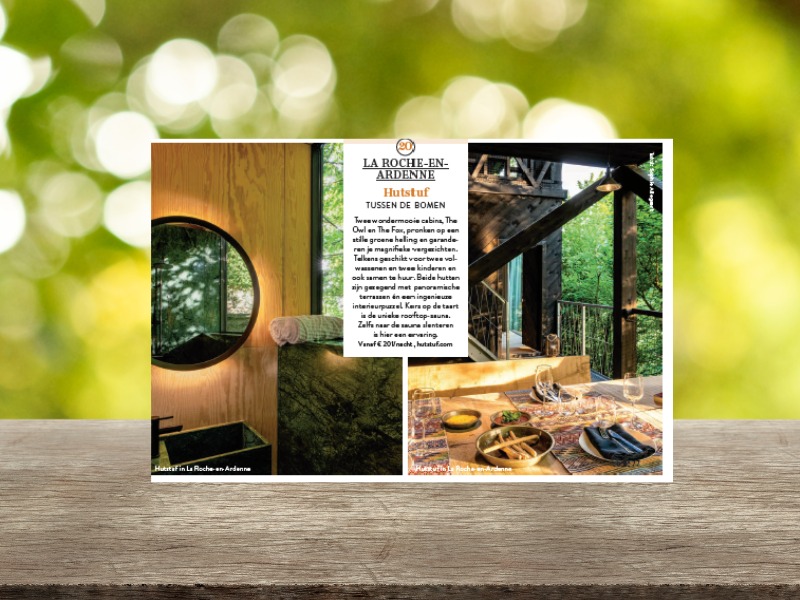 On this page you’ll find an overview of press articles and publications that have already featured Hutstuf. From travel magazines to online platforms, these stories give an independent look at our huts in La Roche-en-Ardenne and Bertogne. Click through to read what the media says about Hutstuf and to discover our concept through their eyes.