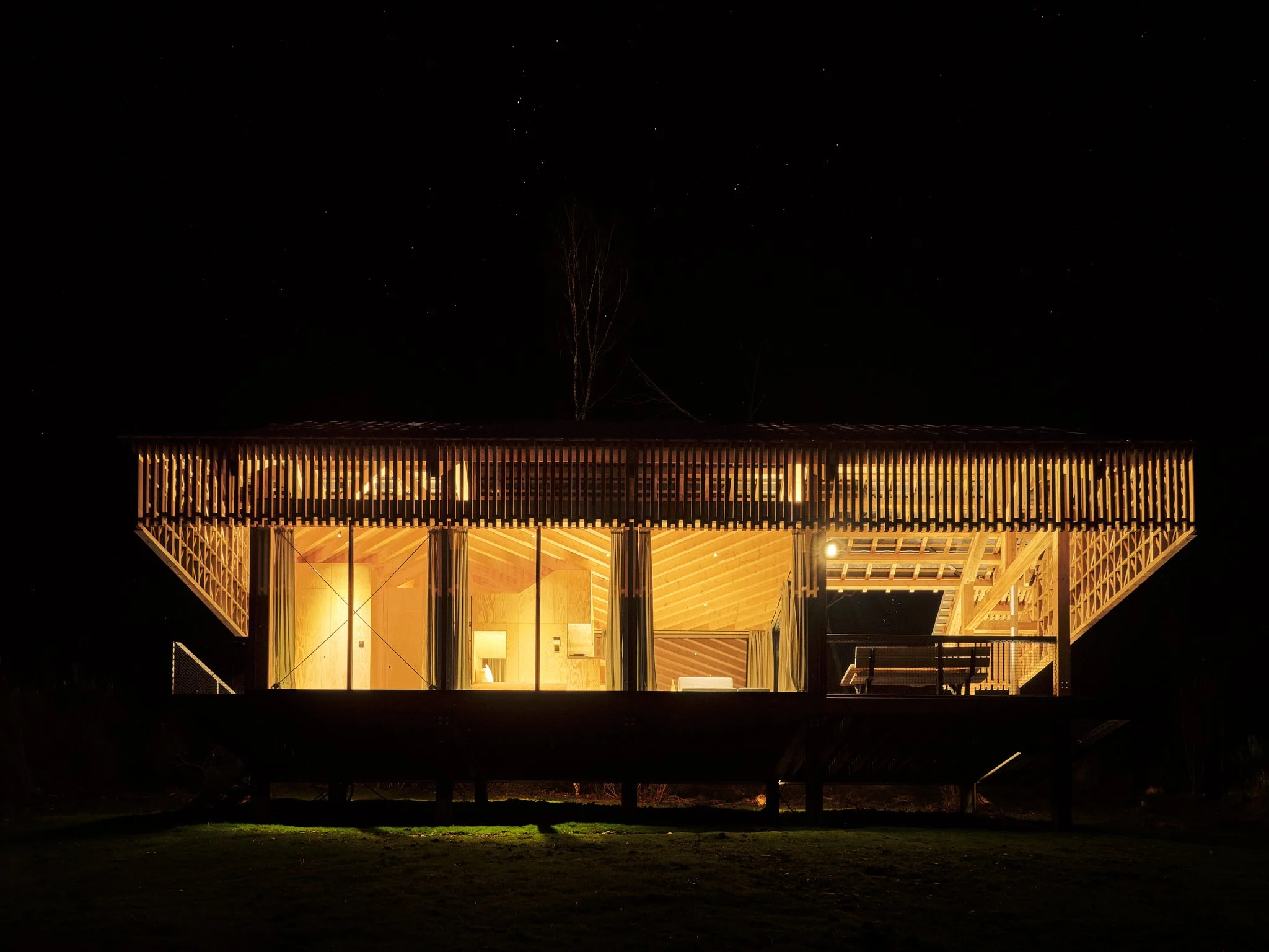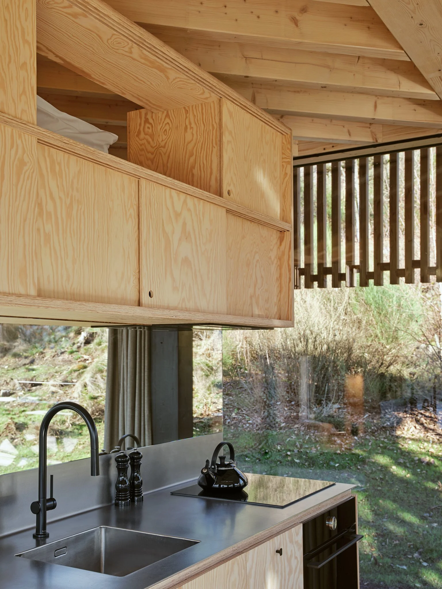 Snuggle up in the comfort of our luxurious master bed or cozy bunk beds while experiencing the sensation of sleeping amidst nature. Imagine drifting off to sleep with a stunning panoramic view stretching before you and waking up to the soothing sight of nature that awakens around you, the playful presence of small woodland creatures add to the serene beauty of your morning.